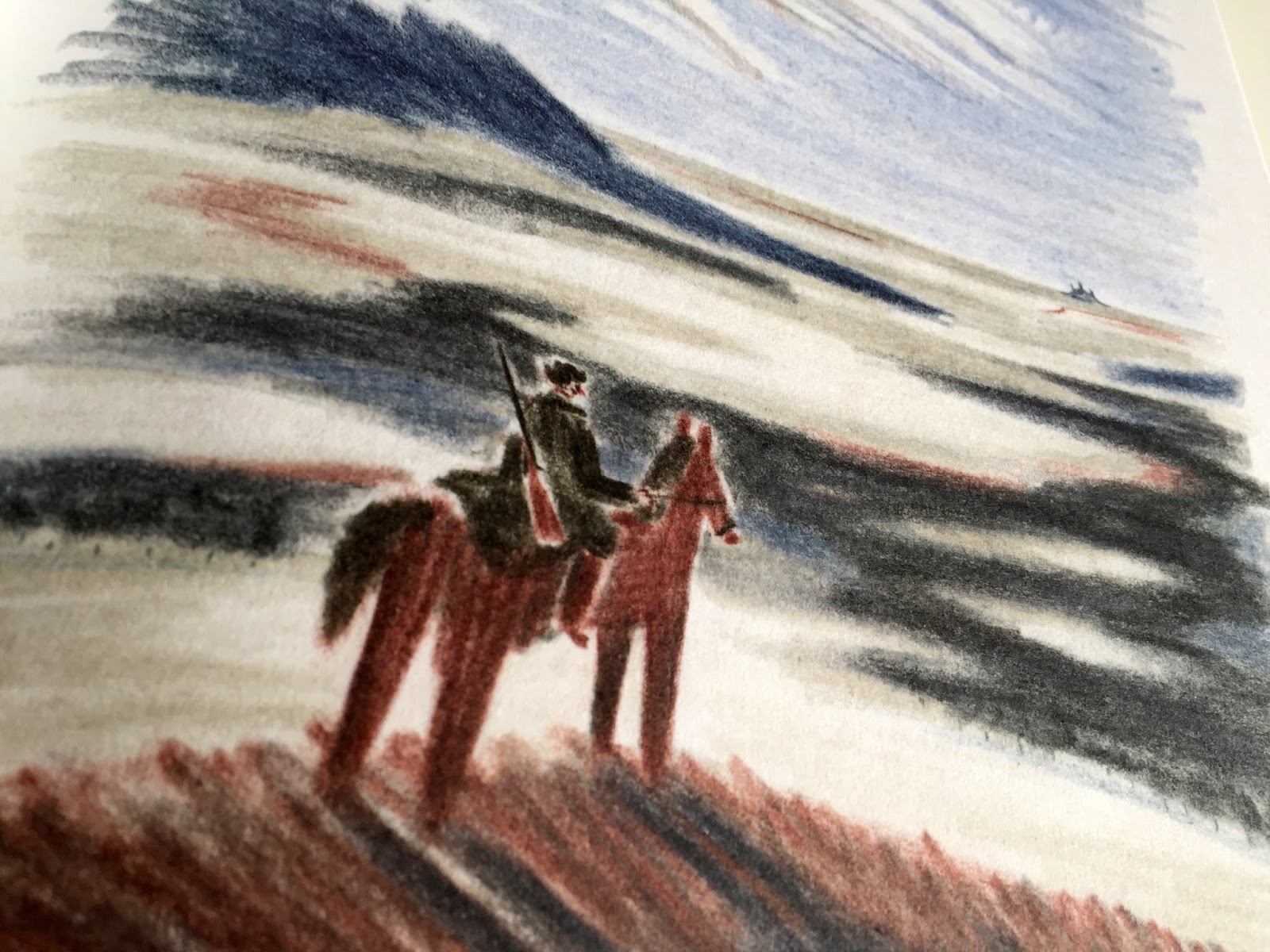 William's coloured pencil renderings always remind me of cave drawings, so the subjects he usually focusses on are made that little bit more historic with his illustration style. Again this book is full of energetic and 'living' illustrations. His renderings give the illusion of motion, like he has drawn these from life (maybe he has a time machine?). The book is jam packed of illustrated beauty, from small studies to full page spreads of wondrous landscapes. Much like Shackleton's Journey, William has stuck to a very strict colour palette throughout, with this book filled with very earthy warm colours, which really bring the feeling of its time and place to life.